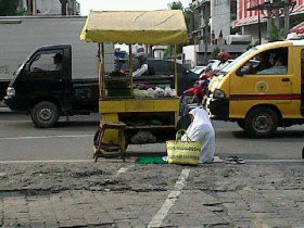 Ya, selama itu pula Rosmiza tak pernah meninggalkan sholat, kendati harus melakukannya di atas trotoar di pinggir jalan raya.